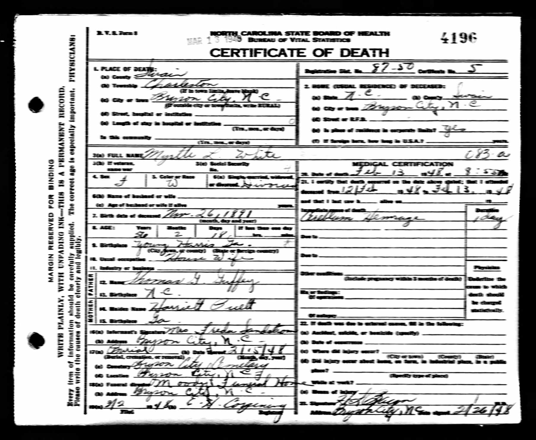 Myrtle L White