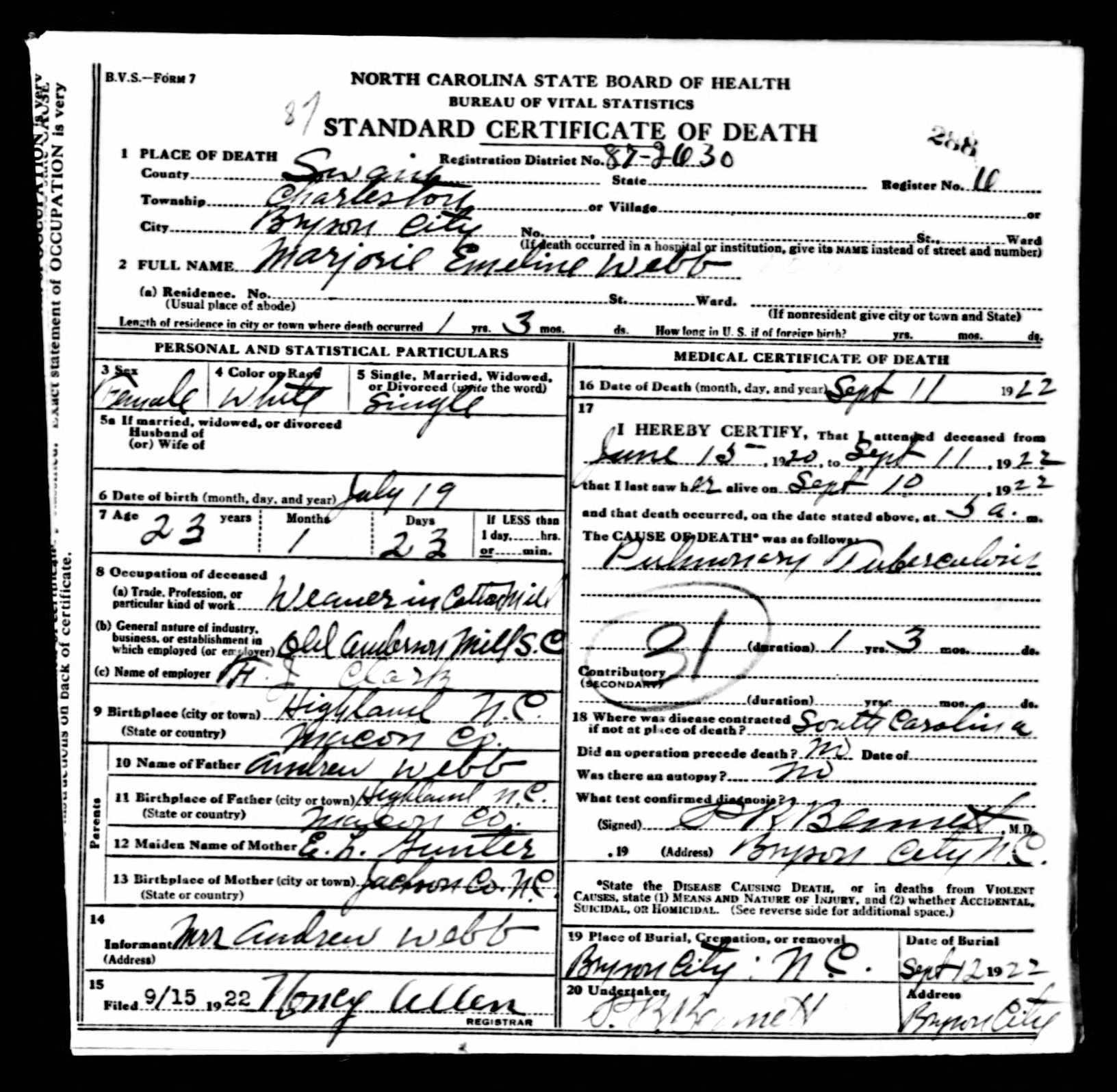 (Jul 19, 1899 - Sep 11, 1922)