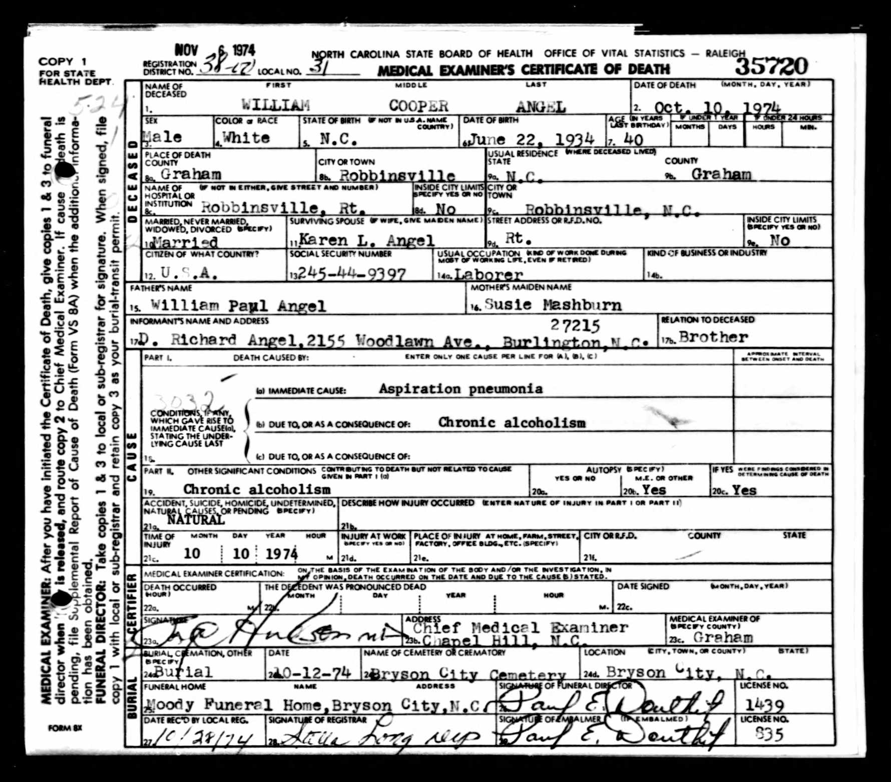 (Jun 22, 1934 - Oct 10, 1974)