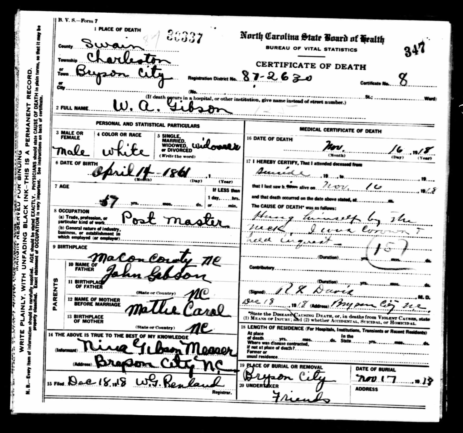 (Apr 14, 1861 - Nov 16, 1918)