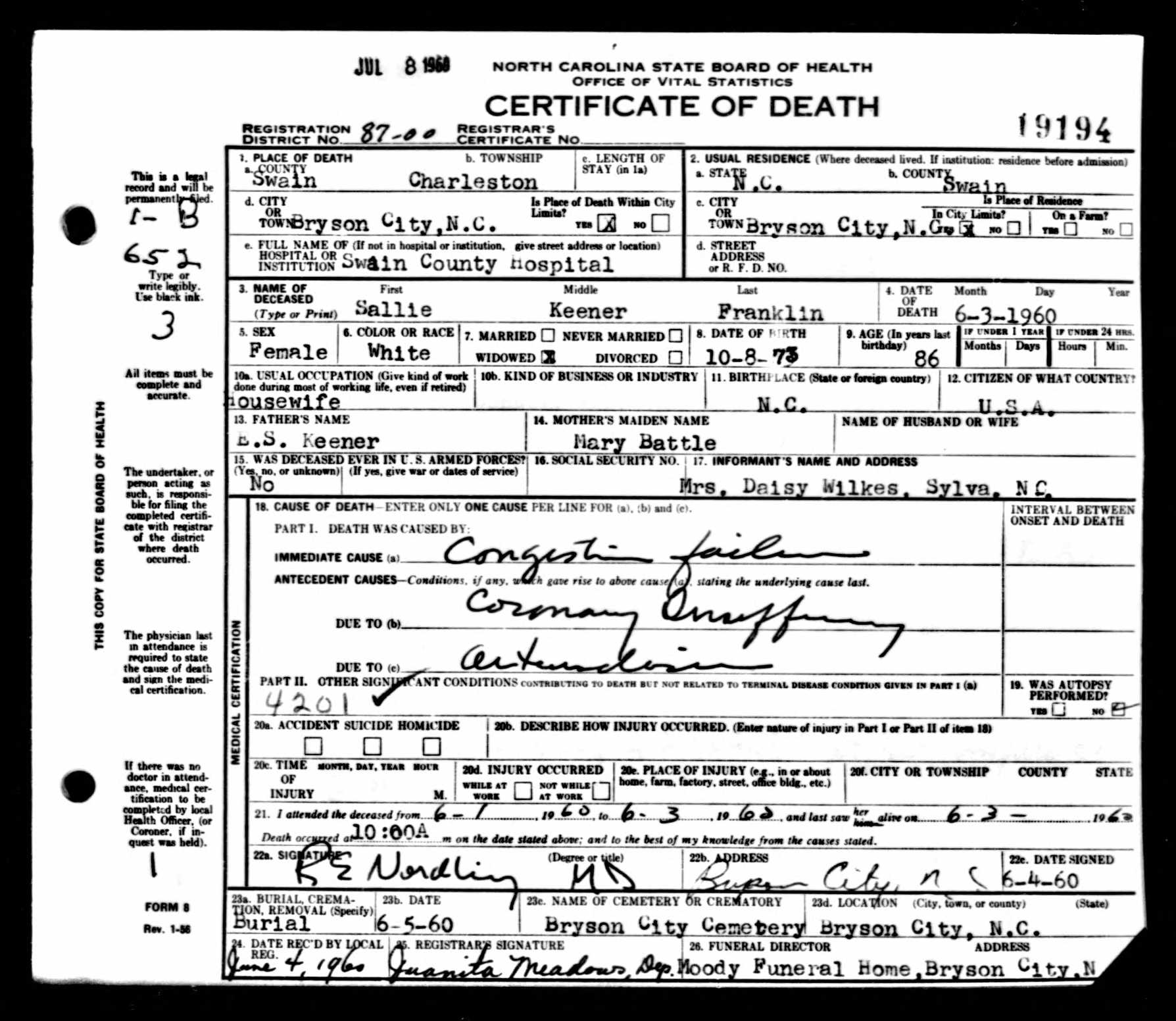 Sallie Keener Franklin