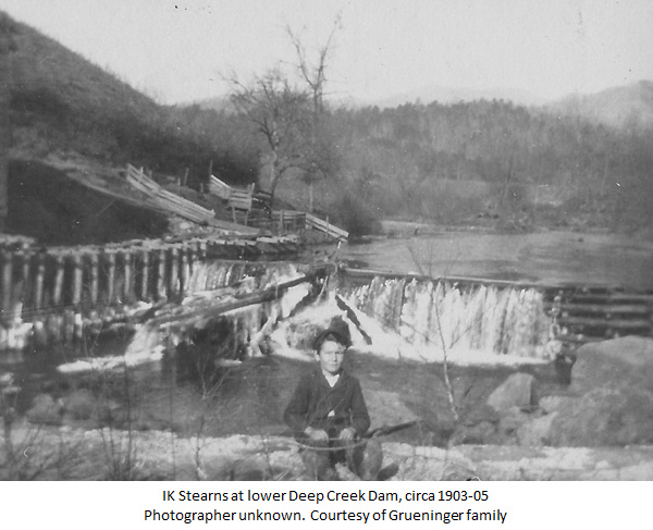 | Young IK Stearns at Bryson dam on lower Deep Creek |